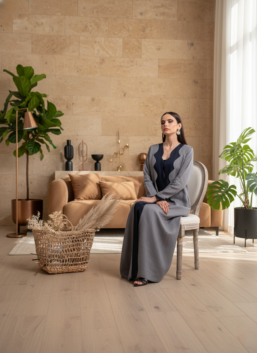 Grey linen abaya Tsmm0037